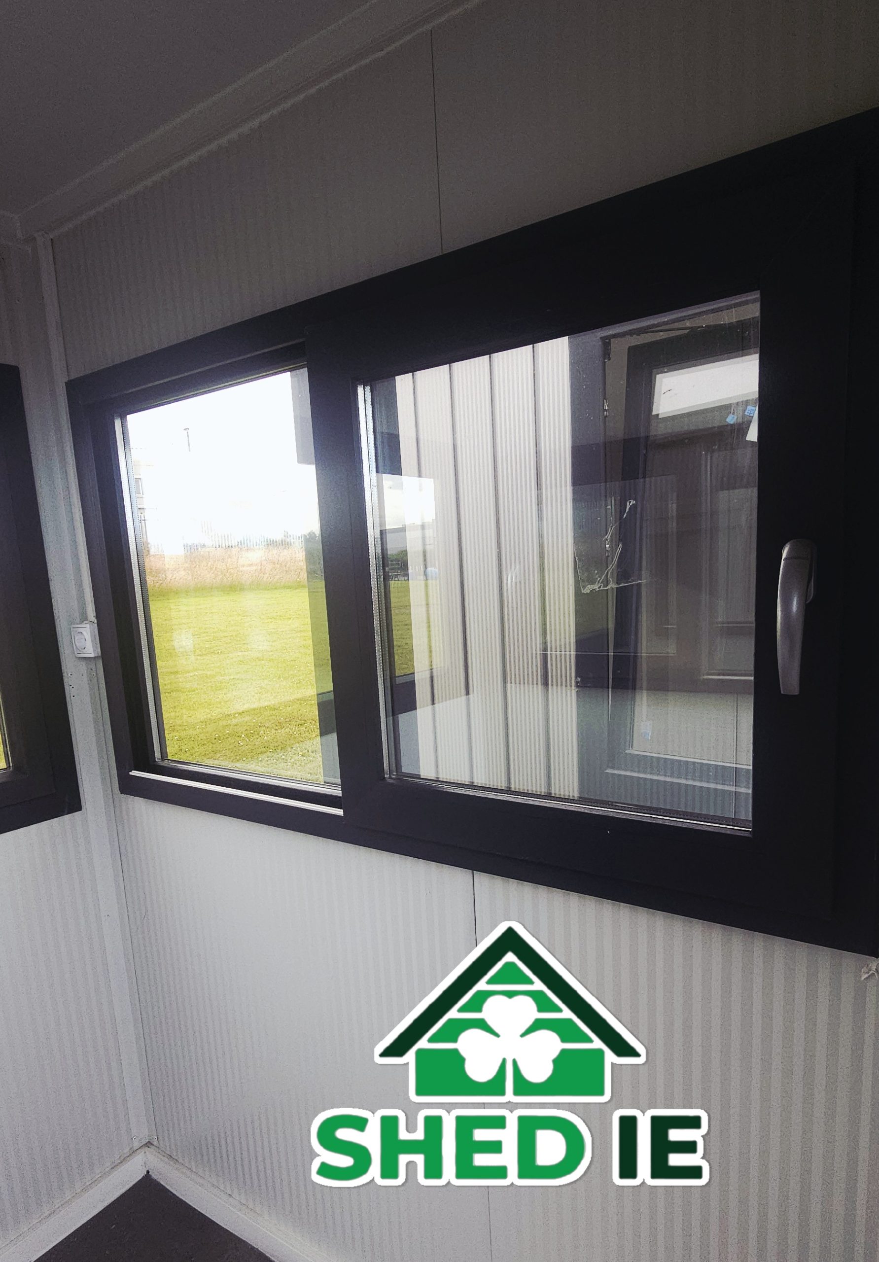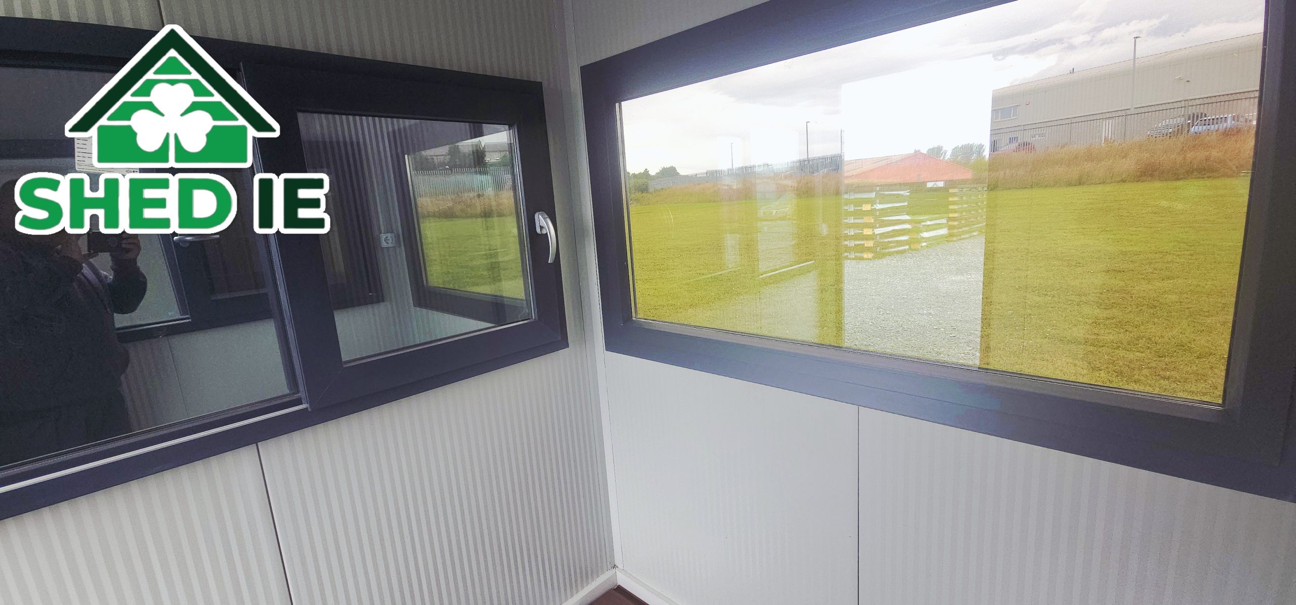 Insulated security cabin with 2 double glazed sliding windows and a large glass which is ideal for 2 side serving.